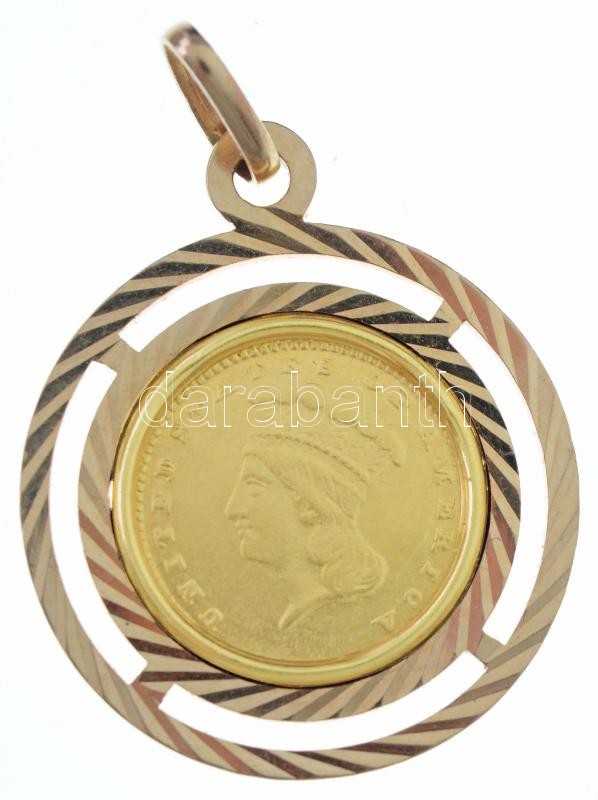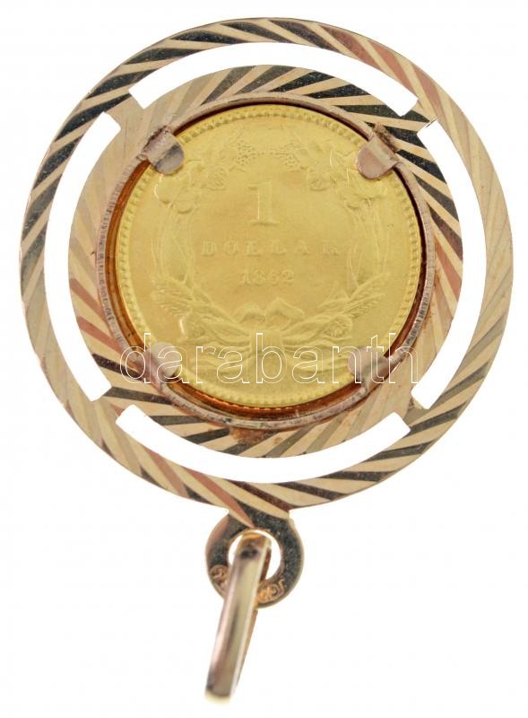 Amerikai Egyesült Államok 1862. 1$ Au "Nagy indián fej" Philadelphia, jelzett Au keretben (érme: 1,67g/0.900, keret 3,14g/0.750) T:1-,2 / USA 1862. 1 Dollar Au "Larg Indian Head" Philadelphia (coin: 1,67g/0.900, frame: 3,14g/0.750) C:AU,XF Krause KM#86