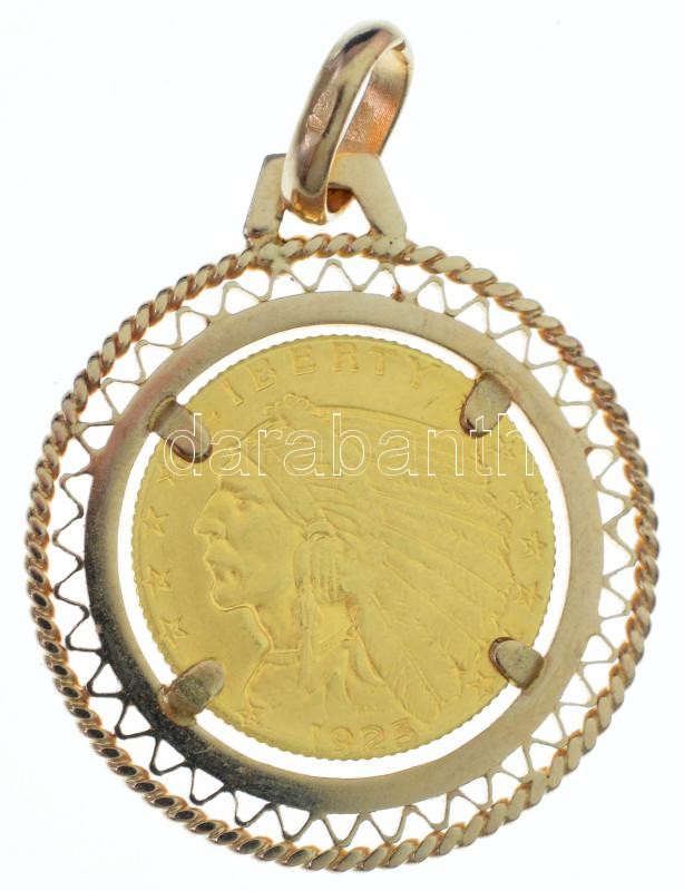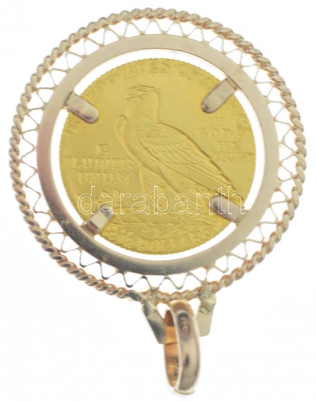 Amerikai Egyesült Államok 1925D 2 1/2$ Au "Indián fej" Denver, jelzett Au keretben (érme: 4,18g/0.900, keret: 4g/0.750) T:1- /