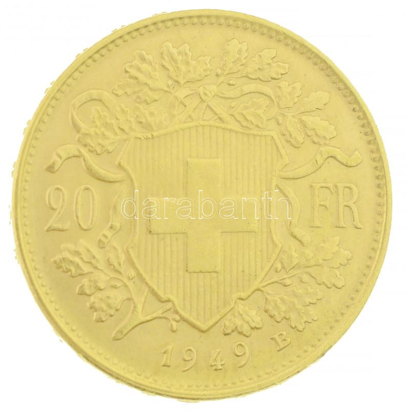 Svájc 1949B 20Fr Au "Helvetia" Bern (6,45g/0.900) T:1-,2 / Switzerland 1949B 20 Francs Au "Helvetia" Bern (6,45g/0.900) C:AU,XF Krause KM# 35