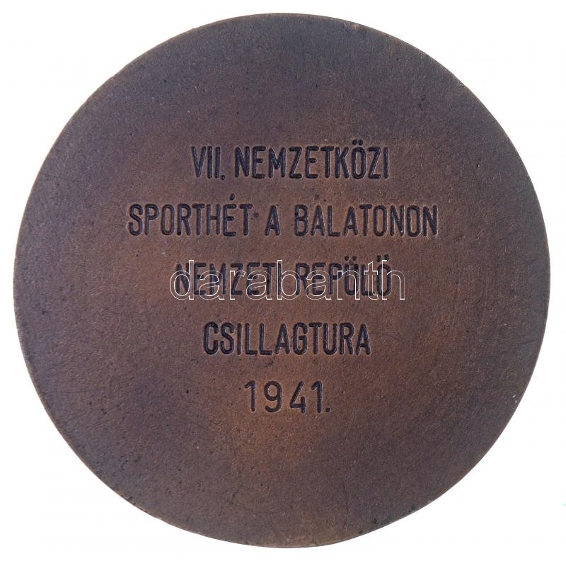 1941. "LABOR IMPROBVE OMNIA VINCIT" Br emlékérem, hátlapon gravírozva "VII. Nemzetközi Sporthét a Balatonon Nemzeti Repülő Csillagtúra 1941". Szign.: A. Patey (73,95g/71mm) T:2 / ph. Hungary 1941. "LABOR IMPROBVE OMNIA VINCIT" Br medallion, with engrave on the reverse. Sign: A. Patey (73,95g/71mm) C:XF edge error