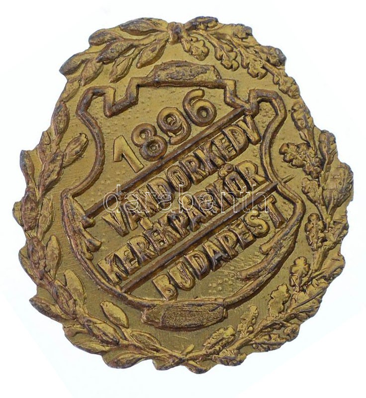 ~1900. " 'Vándor Kedv' Kerékpárkör Budapest 1896" ... https://www.darabanth.com/de/36-Gross-Auktion/36.1/Numismatik/Sportpreise-und-Sportgedenkmedaillen~15429/7E1900-Vandor-Kedv-Kerekparkor-Budapest-1896-aranyozott-Br-gomblyukjelveny-19x18mm-T1-~II2477433