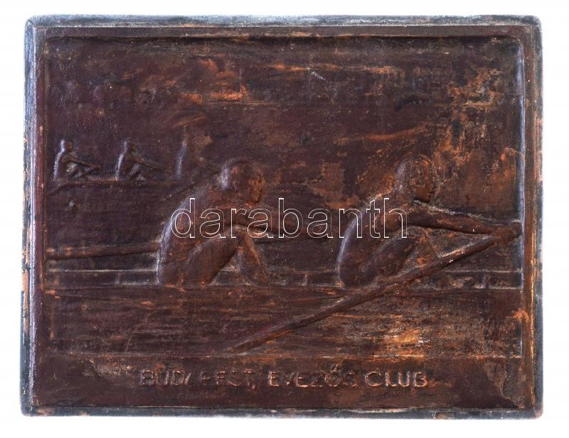 Csillag István (1881-1968) ~1930. "Budapest Evezős Club" nagyméretű evezős sport Br lemezplakett (156g/151x194mm) T:2- patina / Hungary ~1930. "Budapest Evezős Club" large-size rowing sports sheet metal Br plaque (156g/151x194mm) C:VF patina