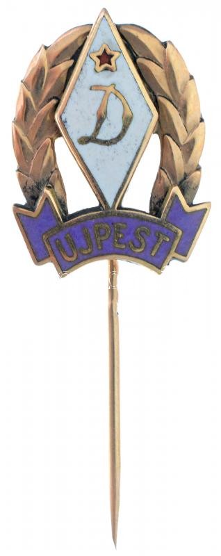 DN "Újpest / Dózsa" zománcozott, jelzett Au kitűző, nemesfém jelzéssel (Br.: 4,13g) T:1- / Hungary ND "Újpest Football Club" hallmarked, enamelled Au badge (Br.: 4,13g) C:AU