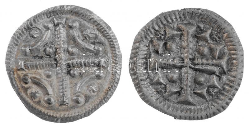 1116-1131. Denar Ag "II. István" (2xklf) (0,34g, 0,43g) T:1,1- patina / Hungary 1116-1131. Denar Ag "Stephen II" (2xdiff) (0,34g, 0,43g) C:UNC,AU patina Huszár: 92., 76., Unger I.: 41.,42