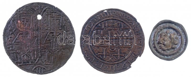 1172-1196. Rézpénz Cu "III. Béla" (2xklf) (1,55g, 1,09g) + 1180-1240. Bracteata Ag "III. Béla - IV. Béla" (0,27g) T:2,2- ly., ki., patina / Hungary 1172-1196. Copper Coin Cu "Béla III" (2xdiff) (1,55g, 1,09g) + 1180-1240. Bracteata Ag "Bela III - Bela IV." (0,27g) C:AU,XF patina Huszár: 72., 73., 192., Unger I.: 114., 115., 122.