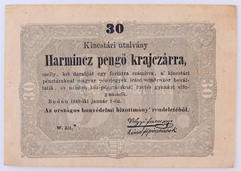 Beschreibung: 1849. 30kr "Kossuth bankó" dátumban "-IKI" sajtóhibával T:III / Hungary 1849. 30 Krajczár "Kossuth banknote" with "-IKI" typographical error in the date C:F