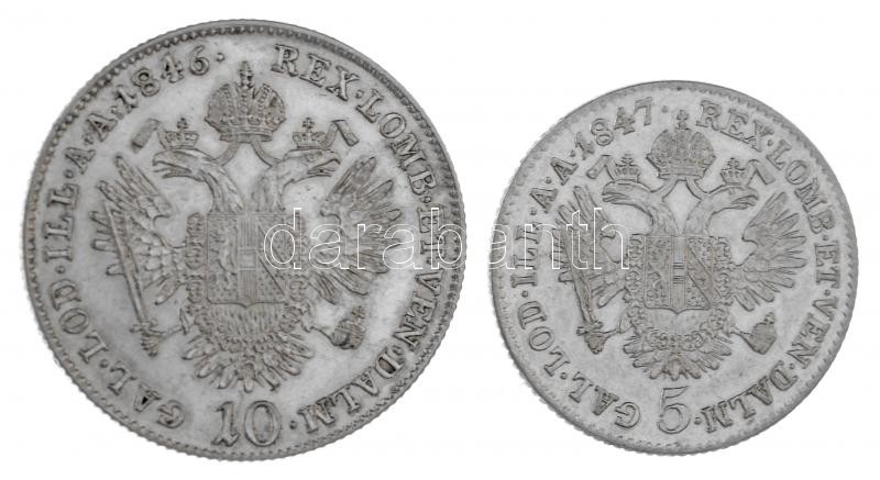 Beschreibung: Ausztria 1846A 10kr Ag "V. Ferdinánd" (3,89g) + 1847A 5kr Ag "V. Ferdinánd" (2,25g) T:1- / Austria 1846A 10 Kreuzer Ag "Ferdinand V" (3,89g) + 1847A 5 Kreuzer Ag "Ferdinand V" (2,25g) C:AU