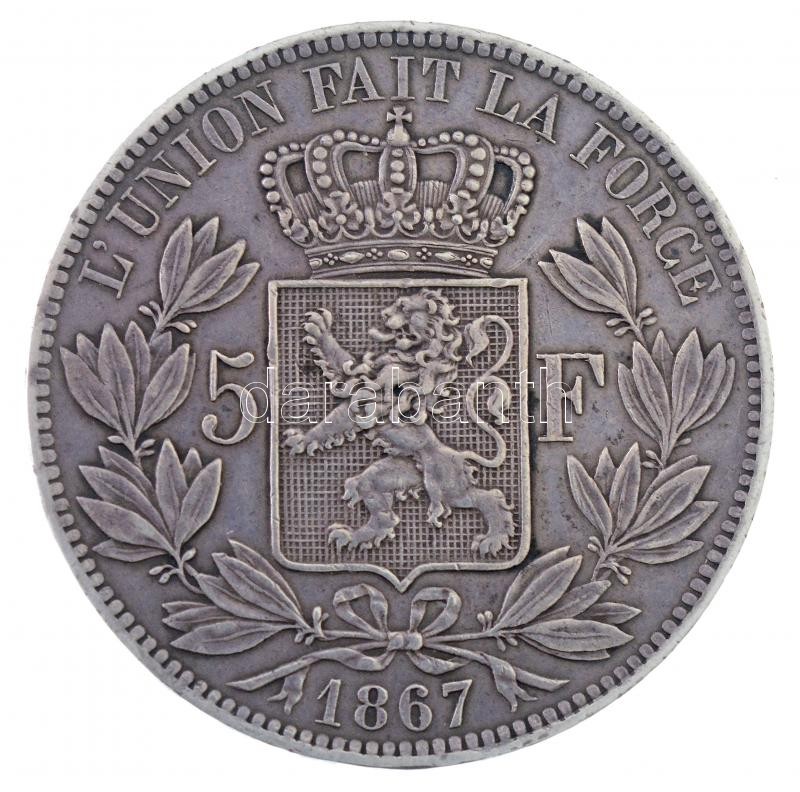 Belgium 1867. 5Fr Ag "II. Lipót" (24,97g) T:1-,2 ph. / Belgium 1867. 5 Francs Ag "Leopold II" (24,97g) C:AU,XF edge error Krause KM#24