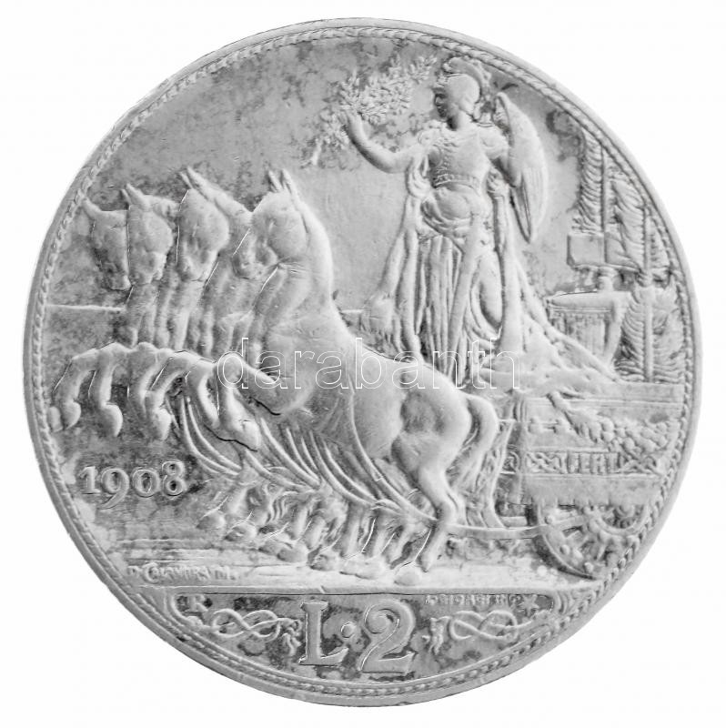 Olaszország 1908R 2L Ag "III. Viktor Emánuel" T:2 ph. / Italy 1908R 2 Lire Ag "Vittorio Emanuele III" C:XF edge error Krause KM# 46
