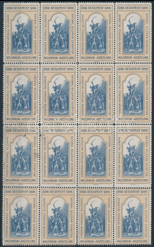 1896 Millennium Budapest kiállítás levélzáró 16-os tömb / label block ... https://www.darabanth.com/de/36-Gross-Auktion/36.1/Philatelie-und-Postgeschichte-Ausland/Paraphilatelie~15177/1896-Millennium-Budapest-kiallitas-levelzaro-16-os-tomb-label-block-of-16~II2480099