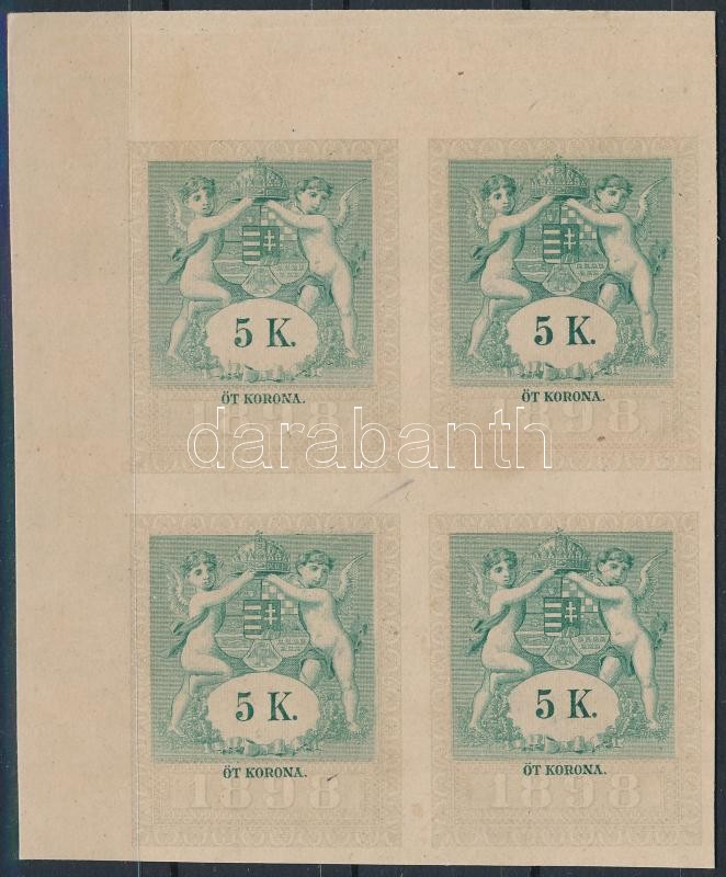 1898 5K okmánybélyeg ívsarki karton négyestömb mintaívből / 5K corner ... https://www.darabanth.com/de/36-Gross-Auktion/36.1/Philatelie-und-Postgeschichte-Ausland/Stempelmarken~15176/1898-5K-okmanybelyeg-ivsarki-karton-negyestomb-mintaivbol-5K-corner-block-of-4-on-cardboard~II2489397