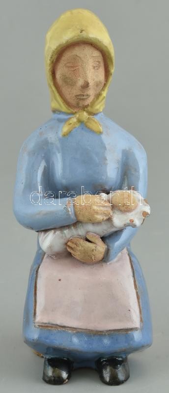 Gádor István (1891-1984): Anya gyermekével. Kézzel formázott, színesen festett kerámia. Apró kopások és csorbák, alján gyári tűzrepedéssel. Masszába karcolt Gádor jelzésekkel. 1930-as évek. m: 14,5 cm