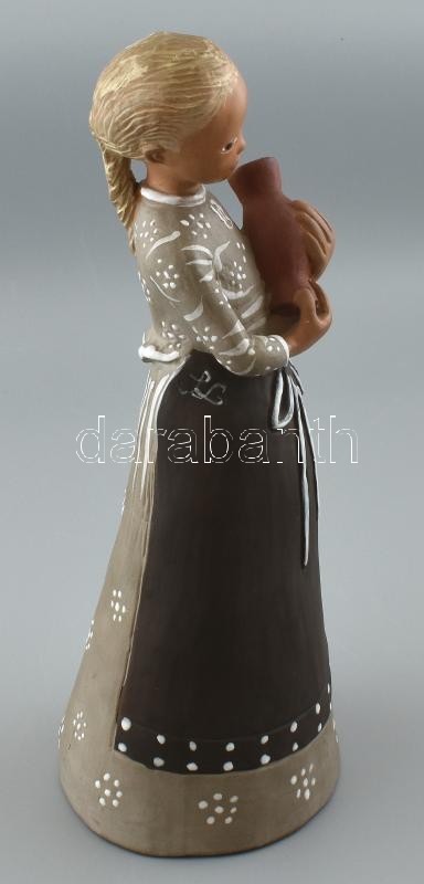 Beschreibung: Kovács Margit (1902-1976): Leány korsóval. Színesen festett, engóbozott kerámia. Korának megfelelő állapotban. KM jelzéssel. m: 34 cm
