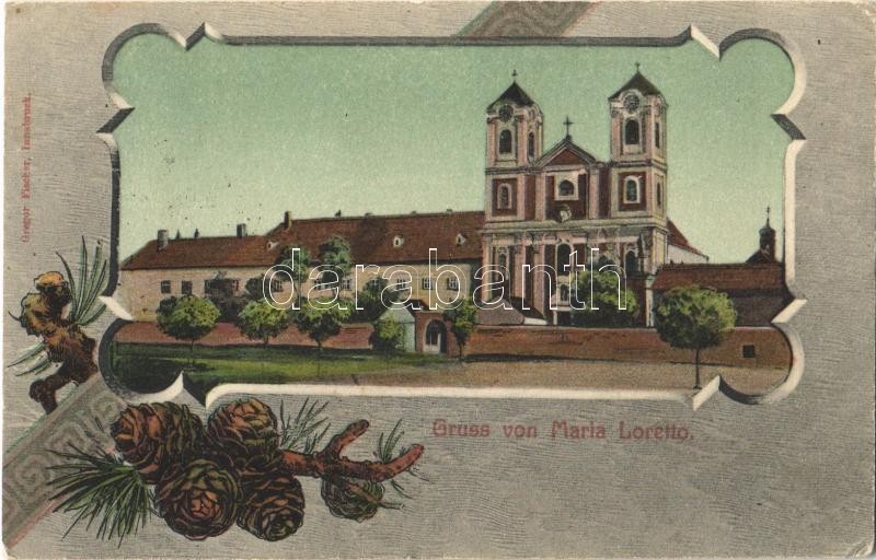 Beschreibung: 1907 Lorettom, Loretto; Gruss von Maria Kirche. Gregor Fischer / templom / church. Art Nouveau, floral