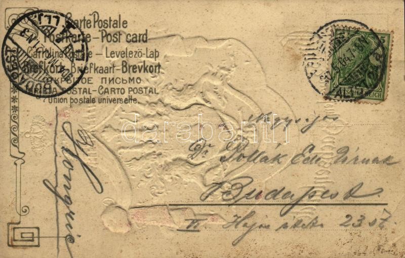 Beschreibung: 1904 Gruss aus dem Sachsenlande / Coat of Arms of the Kingdom of Saxony 1806-1918, Emb. litho (crease)