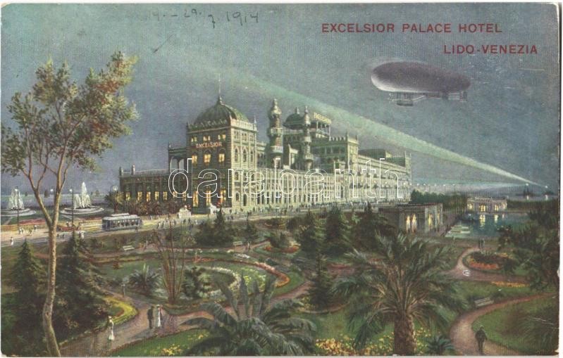 Venezia, Venice; Excelsior Palace Hotel Lido-Venezia / hotel, tram, ai... https://www.darabanth.com/de/360-Fernauktion/360.0/Ansichtskarten/Italien~1000075/Venezia-Venice-Excelsior-Palace-Hotel-Lido-Venezia-hotel-tram-airship~II2076179