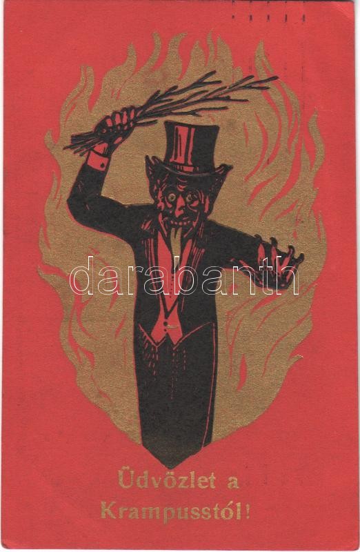 Üdvözlet a Krampusstól! / Krampus greeting art postcard. Emb. (EK) https://www.darabanth.com/de/360-Fernauktion/360.0/Ansichtskarten/Krampus~1000056/Udvozlet-a-Krampusstol-Krampus-greeting-art-postcard-Emb-EK~II2075645