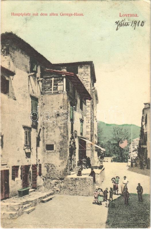 1908 Lovran, Lovrana, Laurana; Hauptplatz mit dem alten Georgs-Haus / ... https://www.darabanth.com/de/360-Fernauktion/360.0/Ansichtskarten/Kroatien~1000010/1908-Lovran-Lovrana-Laurana-Hauptplatz-mit-dem-alten-Georgs-Haus-main-square-old-house-EK~II2077341