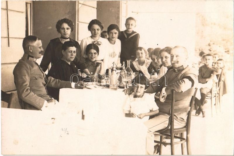 1914 Crikvenica, Cikrvenica; úri társaság ebéd közben katonákkal / lun... https://www.darabanth.com/de/360-Fernauktion/360.0/Ansichtskarten/Kroatien~1000010/1914-Crikvenica-Cikrvenica-uri-tarsasag-ebed-kozben-katonakkal-lunch-with-soldiers-Atelie~II2076615