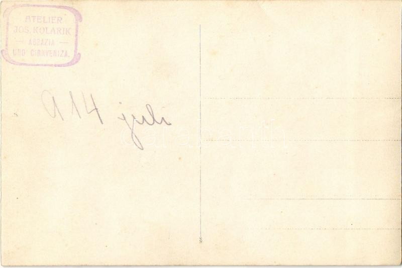 Beschreibung: 1914 Crikvenica, Cikrvenica; úri társaság ebéd közben katonákkal / lunch with soldiers. Atelier Jos. Kolarik, photo