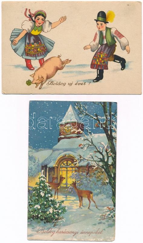 Beschreibung: 45 db VEGYES motívum képeslap az 1930-as, 40-es és 50-es évekből: üdvözlő / 45 mixed motive postcards from 1930, 1940 and 1950: greeting