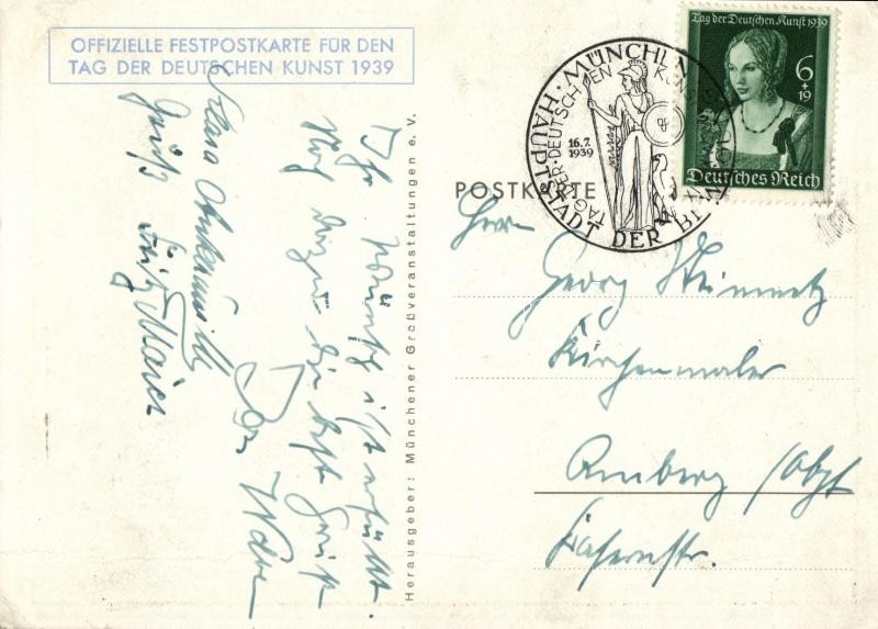 1939 Tag der Deutschen Kunst, München / German Art Exhibition, NSDAP G... https://www.darabanth.com/de/360-Fernauktion/360.0/Ansichtskarten/Propaganda-Politik~1000066/1939-Tag-der-Deutschen-Kunst-Munchen-German-Art-Exhibition-NSDAP-German-Nazi-propaganda-plus-So-S~II2069655