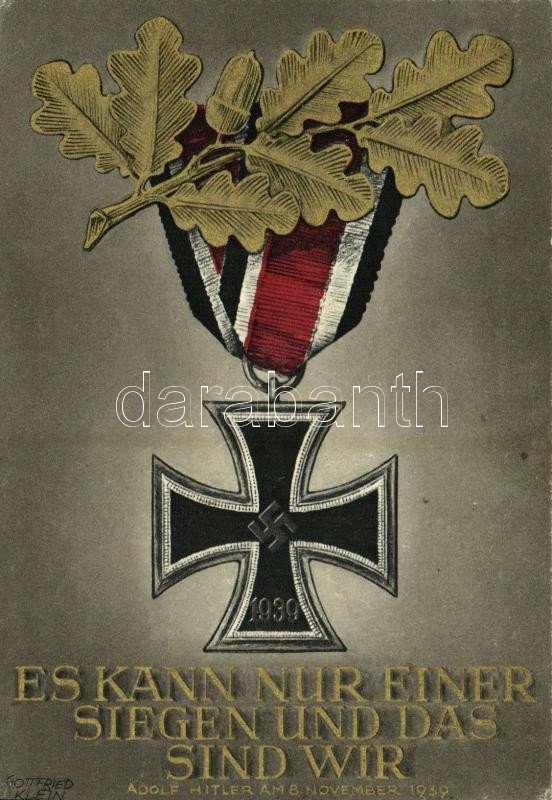 Es kann nur einer Siegen und das sind wir. Adolf Hitler am 8. November 1939 / NSDAP German Nazi propaganda art postcard + stamps on the backside s: Gottfried Klein (EK)