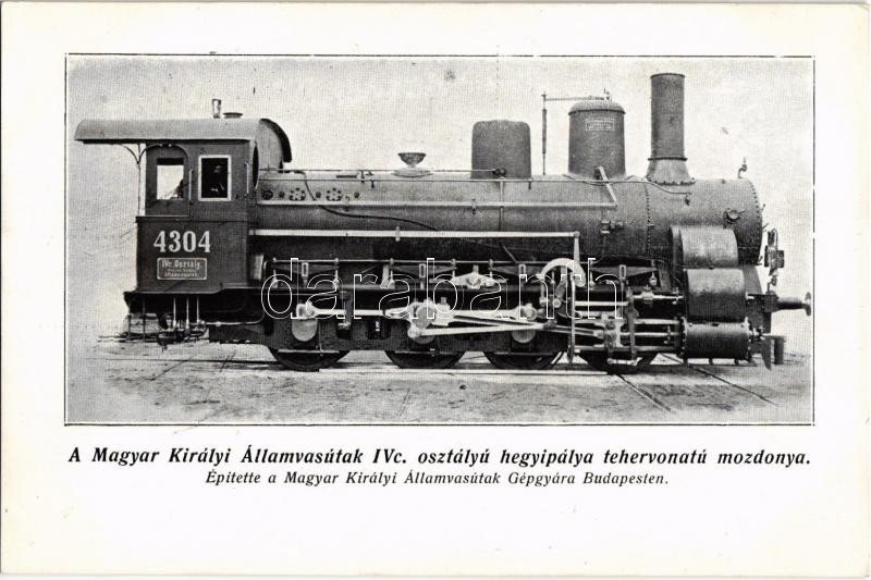 A Magyar Királyi Államvasutak IVc. osztályú 4304. pályaszámú hegyipálya tehervonatú mozdonya. Építette a Magyar Királyi Államvasutak Gépgyára Budapesten. "A Gőzmozdony" kiadása / Hungarian State Railways locomotive