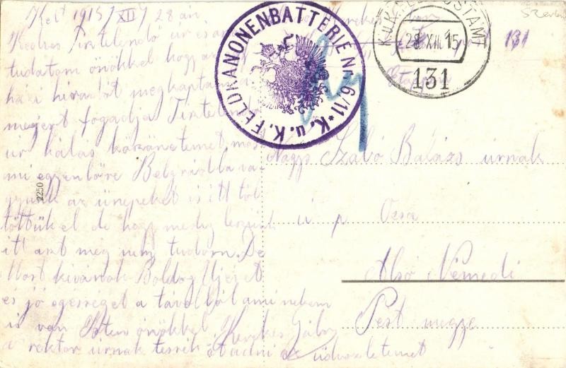 Belgrade, street view with tram + K.u.K. Feldkanonenbatterie Nr. 6/11. https://www.darabanth.com/de/360-Fernauktion/360.0/Ansichtskarten/Serbien~1000083/Belgrade-street-view-with-tram-plus-KuK-Feldkanonenbatterie-Nr-611~II1850035