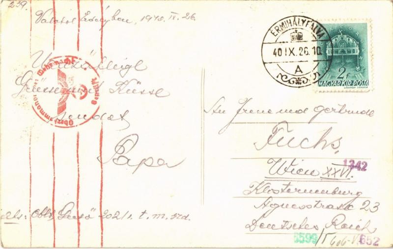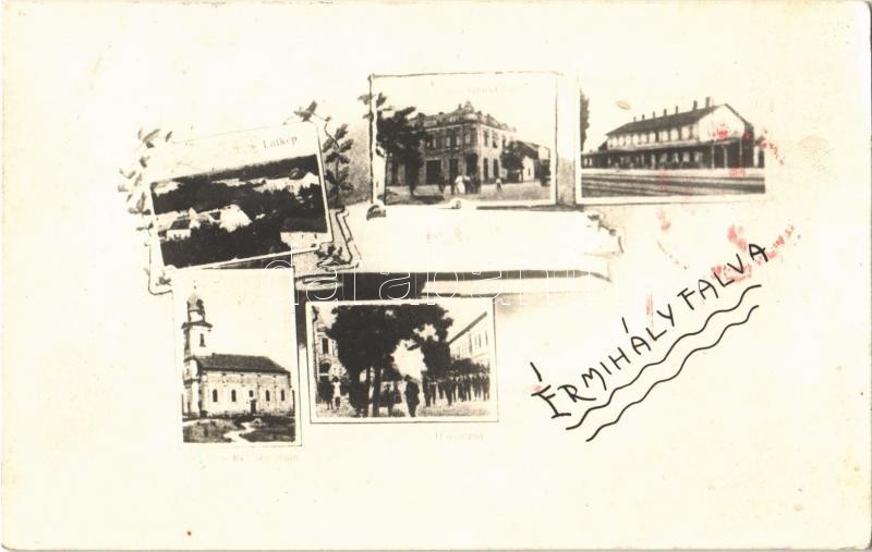 1940 Érmihályfalva, Valea lui Mihai; vasútállomás, Református templom, Fő utca, Grosz ház / railway station, villa, Calvinist church, main street. Art Nouveau, floral