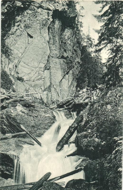 Beschreibung: Erdélyi Kárpátok, Siebenbürgische Karpathen; Lotrufälle, Siebenrichterwaldung / Lotru vízesés, Hétbírák erdeje. Jos. Drotleff, Phot. E. Fischer Nr. 323. / Lotru waterfall, forest