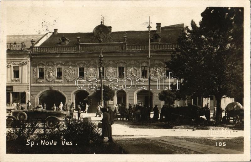 Igló, Zipser Neudorf, Spisská Nová Ves; Schwartz üzlete, piac árusokkal, autó, takarékpénztár / square, market, automobile, shops, savings bank. Lichtig 185.