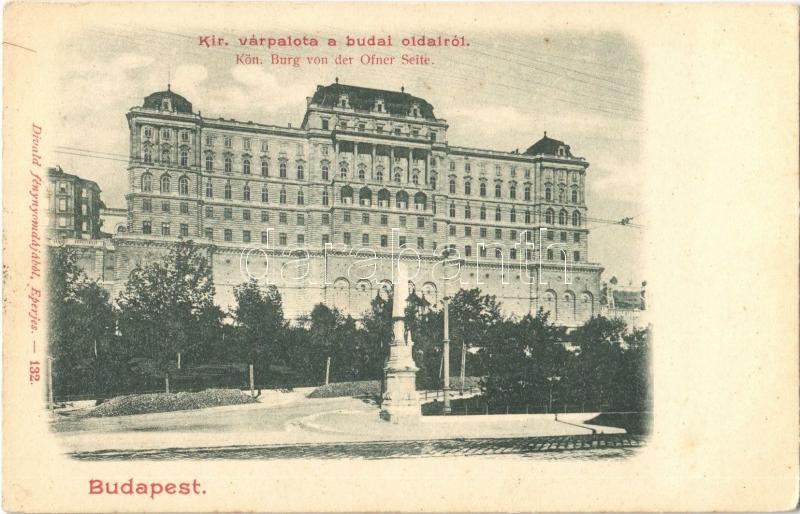 1900 Budapest I. Királyi várpalota a budai oldalról. Divald 132. https://www.darabanth.com/de/360-Fernauktion/360.0/Ansichtskarten/Ungarn~1000005/1900-Budapest-I-Kiralyi-varpalota-a-budai-oldalrol-Divald-132~II2075099
