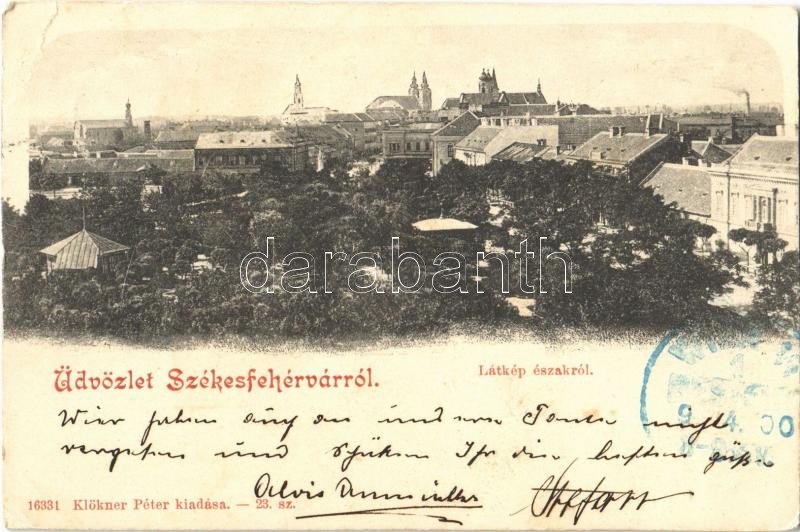 Beschreibung: 1900 Székesfehérvár, látkép északról, zsinagóga, templomok. Kiadja Klökner Péter 23. sz. (EK)