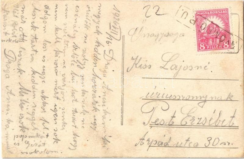 Beschreibung: 1926 Gyömrő, Pirike Villa. photo + "GYÖMRŐ P.U." (r)