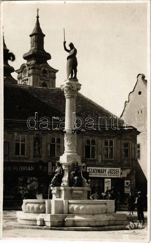 Beschreibung: 1928 Székesfehérvár, Püspöki szökőkút, Modiano, Szathmáry József cipész üzlete, denaturált szesz kimérés. Tóth photo