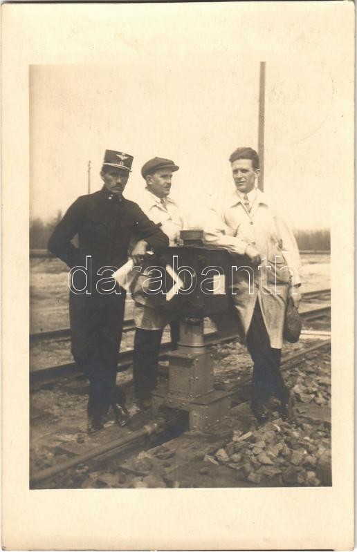 1929 Hegyeshalom, vasúti váltókezelők. photo https://www.darabanth.com/de/360-Fernauktion/360.0/Ansichtskarten/Ungarn~1000005/1929-Hegyeshalom-vasuti-valtokezelok-photo~II2075642