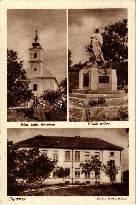 1942 Gyarmat, Római katolikus templom, Hősök szobra, Római katolikus i... https://www.darabanth.com/de/360-Fernauktion/360.0/Ansichtskarten/Ungarn~1000005/1942-Gyarmat-Romai-katolikus-templom-Hosok-szobra-Romai-katolikus-iskola-Kiadja-a-Hangya-SzC3~II1958294