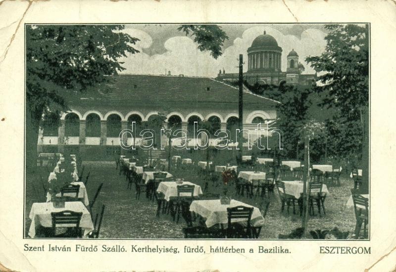 Esztergom, Szent István Fürdő Szálló, kerthelyiség, fürdő, áttérben a ... https://www.darabanth.com/de/360-Fernauktion/360.0/Ansichtskarten/Ungarn~1000005/Esztergom-Szent-Istvan-Furdo-Szallo-kerthelyiseg-furdo-atterben-a-Bazilika-EB~II2071411