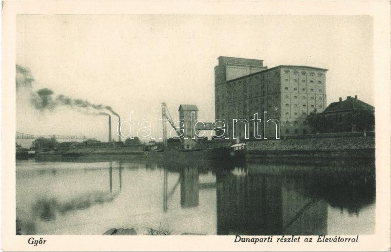 Győr, Duna-parti részlet az Elevátorral, gabonaraktár https://www.darabanth.com/de/360-Fernauktion/360.0/Ansichtskarten/Ungarn~1000005/Gyor-Duna-parti-reszlet-az-Elevatorral-gabonaraktar~II2071903