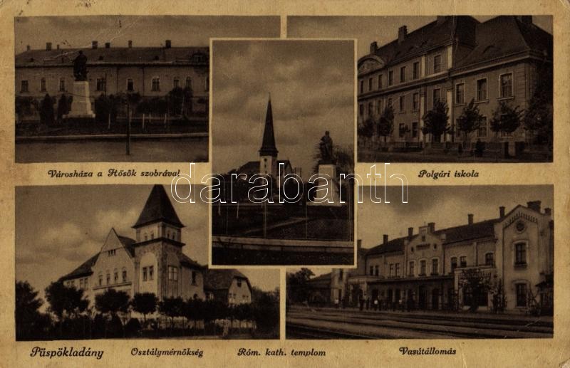 Püspökladány, Városháza, Hősök szobra, polgári iskola, Osztálymérnöksé... https://www.darabanth.com/de/360-Fernauktion/360.0/Ansichtskarten/Ungarn~1000005/Puspokladany-Varoshaza-Hosok-szobra-polgari-iskola-Osztalymernokseg-vasutallomas~II2077542