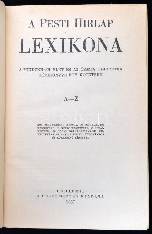 A Pesti Hírlap Lexikona. A mindennapi élet és az összes ismeretek kézikönyve egy kötetben A-Z. Bp., 1937, Pesti Hírlap. Átkötött modern egészvászon kötésben.