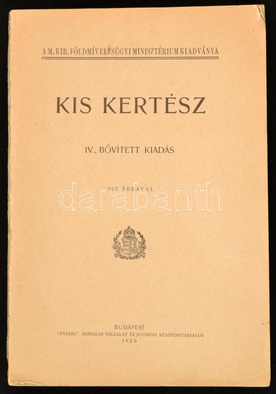 Kis kertész. M. Kir. Földmívelésügyi Minisztérium kiadványa. IV. bővített kiadás. Bp.,1929,"Pátria", 336 p. Egészoldalas illusztrációkkal. Kiadói papírkötésben, hiányzó elülső papírborítóval.