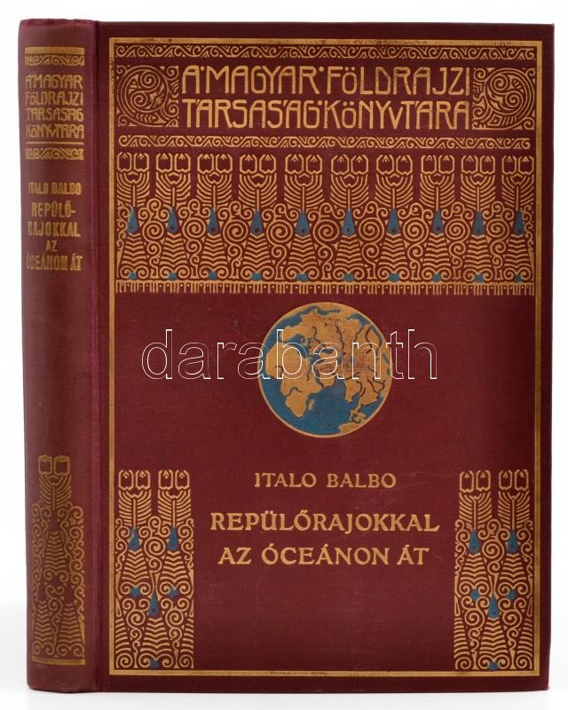 Italo Balbo: Repülőrajokkal az óceánon át. Fordította Révay József. Magyar Földrajzi Társaság Könyvtára. Bp., [1931], Franklin, 188+2 p.+31 t. (fekete-fehér fotók)+1 térkép. Egészoldalas fekete-fehér fotókkal és egy térképpel illusztrálva. Kiadói dúsan aranyozott egészvászon sorozatkötésben.