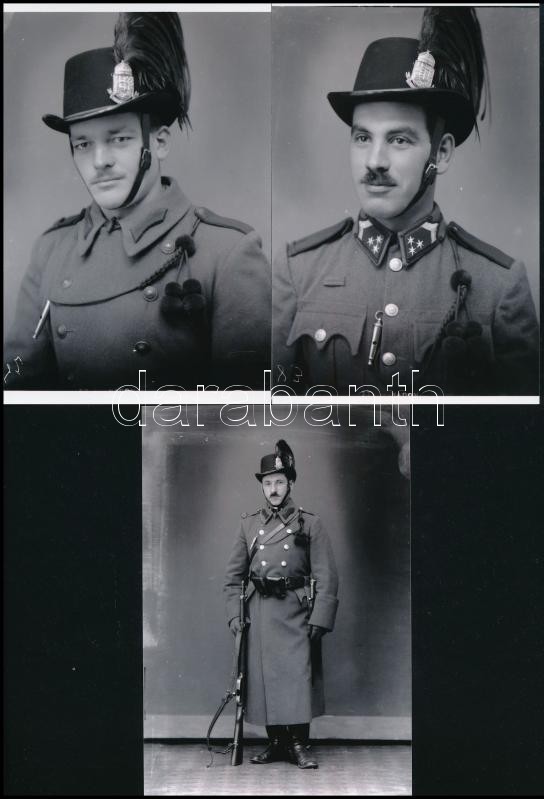 Beschreibung: cca 1943 Csendőrök a kiskunfélegyházi Marika fotóműteremben, 3 db mai nagyítás, vintage üveglemez negatívokról, 15x10 cm