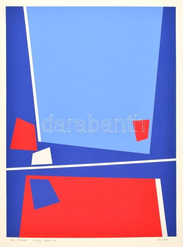 Beschreibung: Joseph Kádár (1936-2019): Kompozíció. Szitanyomat, papír, jelzett, számozott (97/100), 55x39 cm