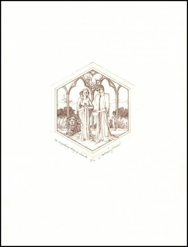 Beschreibung: Molnári ... jelzéssel: Az oroszlános lovag és Luente. Rézkarc, papír, Jelzett. 13x12 cm