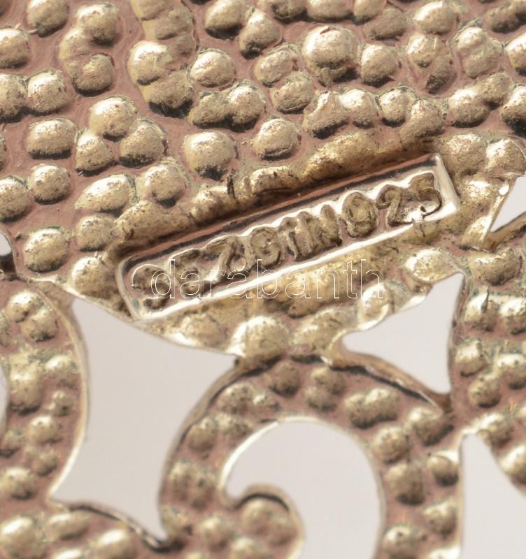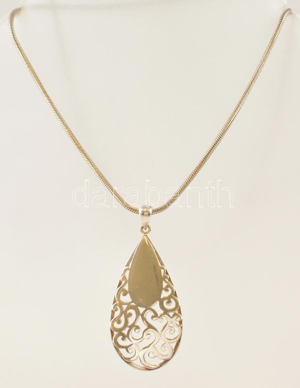 Beschreibung: Ezüst(Ag) vastag kígyó nyaklánc, áttört csepp medállal, jelzett, h: 60 cm, 5,2×2,4 cm, nettó: 20,4 g