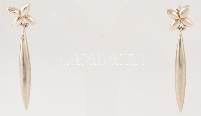Beschreibung: Ezüst(Ag) virágos fülbevalópár, hosszúkás függővel, jelzett, h: 4,2 g, nettó: 6,6 g