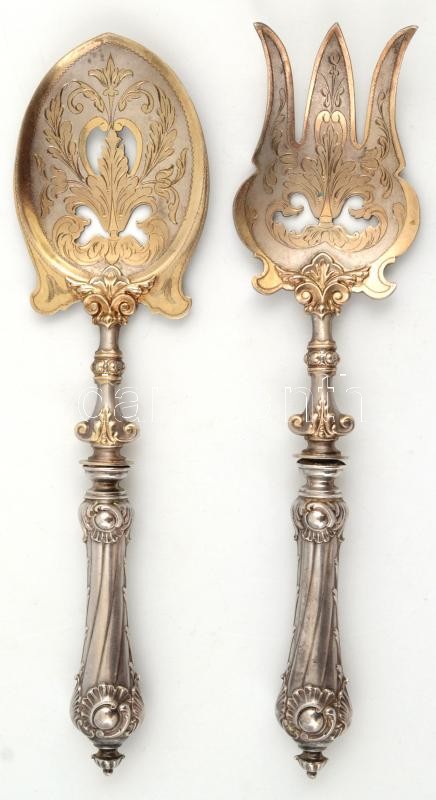 Ezüst(Ag) nyelű tálaló villa és kanál, jelzett, h: 27 cm https://www.darabanth.com/de/360-Fernauktion/360.0/Kunst-Dokumente-andere-Sammelgebiete/Antik~500004/EzustAg-nyelu-talalo-villa-es-kanal-jelzett-h-27-cm~II2073247